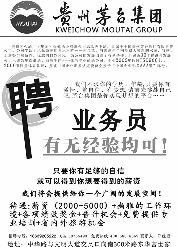 贵州茅台集团保健酒有限公司忠孝天下酒开到安阳了,欢迎各路销售精英前来入住。