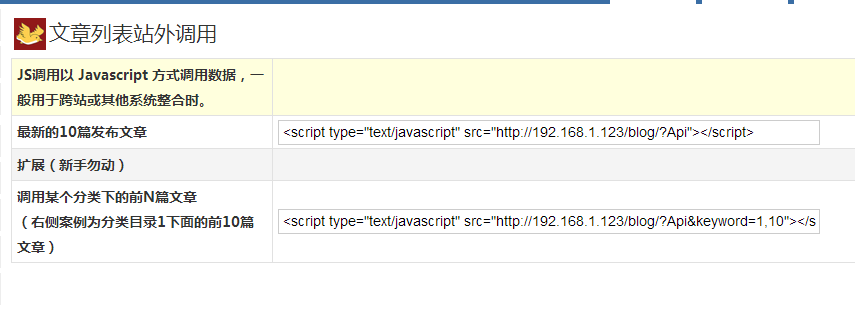 文章列表站外调用(数据调用)